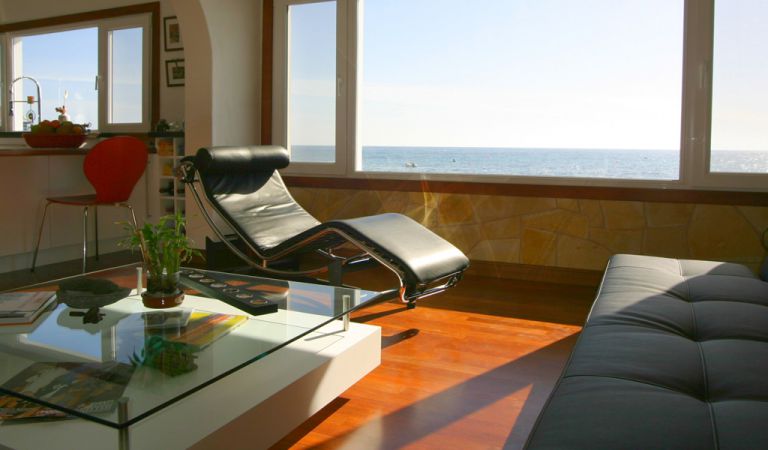 | Die Ferienwohnung liegt in erster Reihe zum Meer mit freier Sicht durch das große Wohnraumfenster. Legen Sie sich in die Liege von Le Corbusier und genießen Sie den herrlichen Blick auf den Atlantik. | |||||
