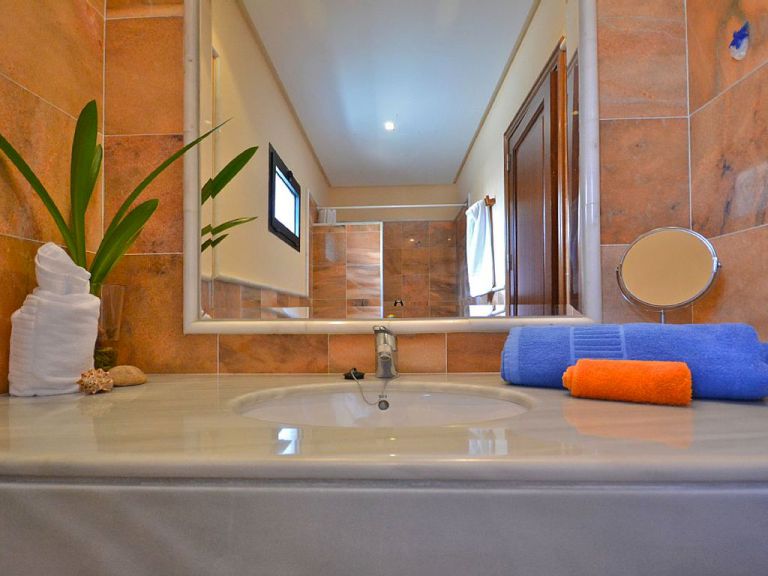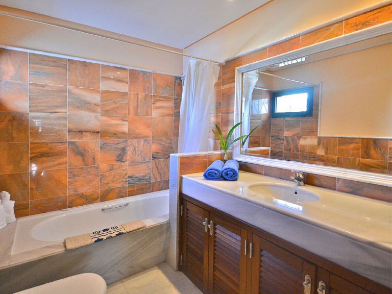 | Zwei Schlafzimmer verfügen über große Doppelbetten, das dritte ist mit Einzelbetten ausgestattet. In jedem Schlafzimmer gibt es geräumige Einbaukleiderschränke. Die beiden Badezimmer verfügen über eine Dusche bzw. Badewanne und Bidet. |