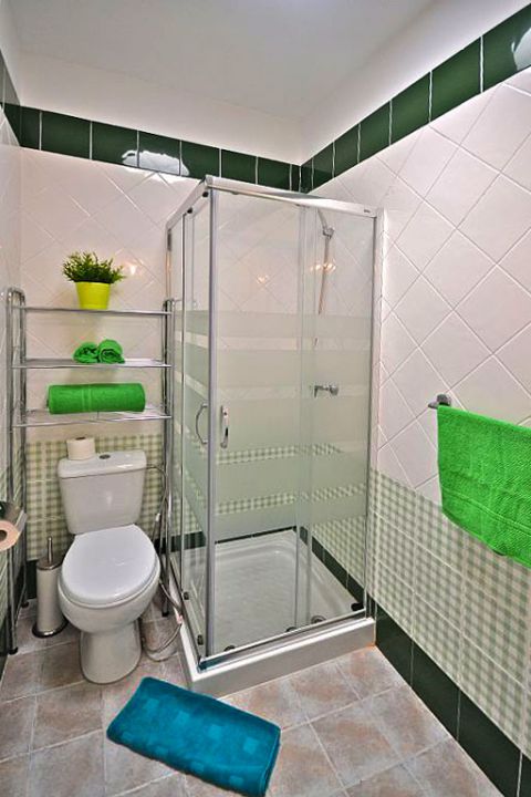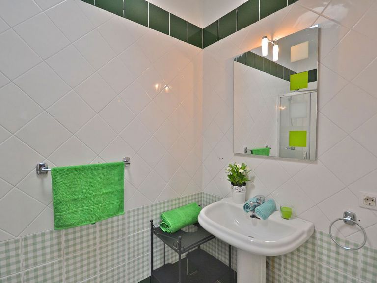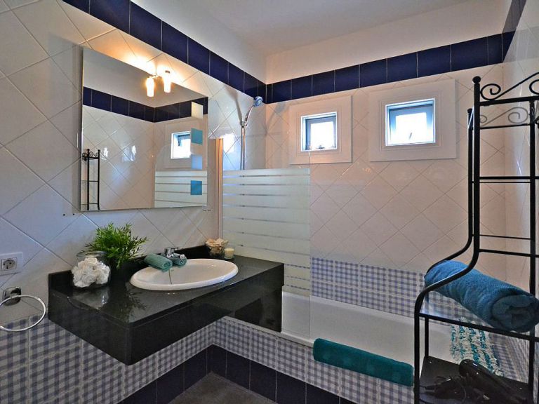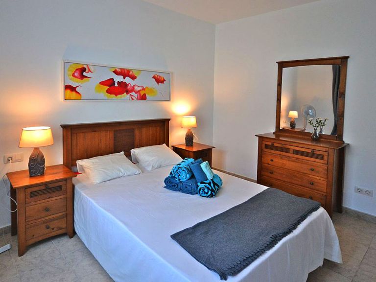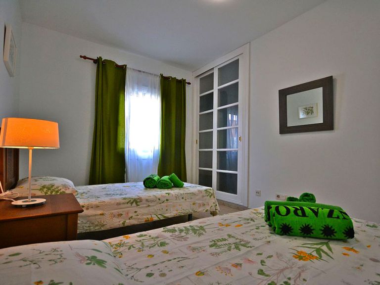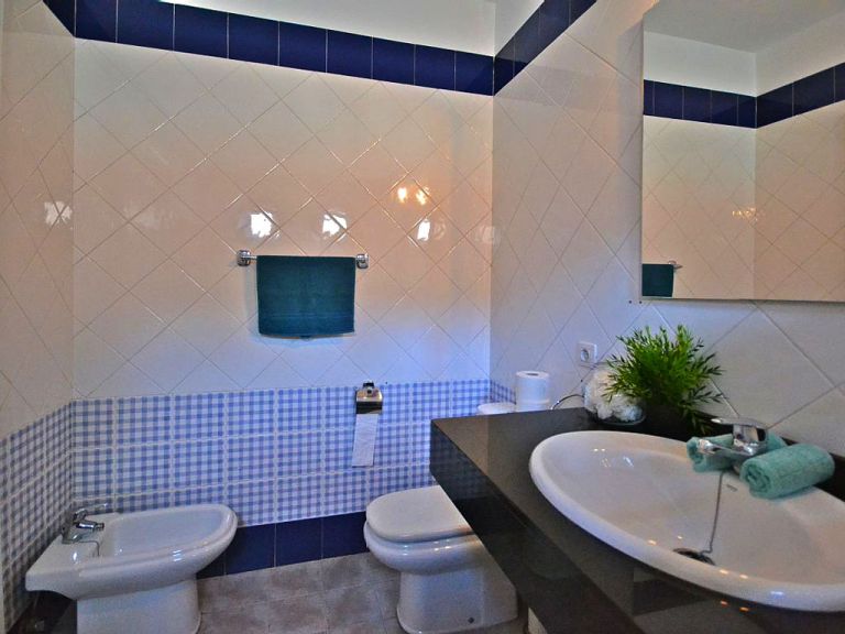 | Die Villa verfügt über zwei große Schlafzimmer, eine Hauptschlafzimmer mit einem Doppelbett und mit eigenem Bad mit Badewanne. Das zweite Schlafzimmer ist mit 2 Einzelbetten ausgestattet. Darüber hinaus gibt es eine zweites Badezimmer mit Dusche, Waschbecken und WC. | |||||