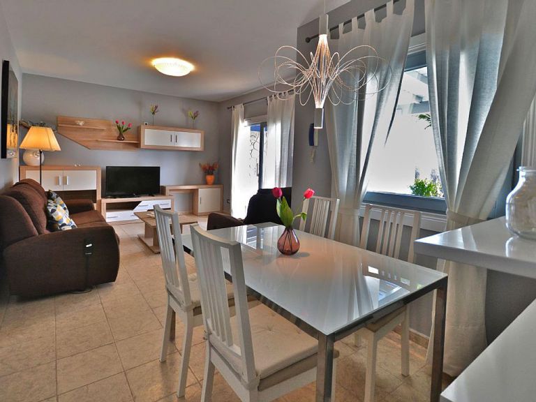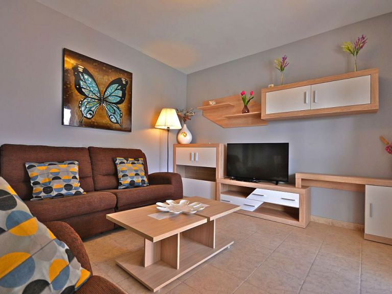 | Das Wohnzimmer mit direktem Zugang auf die Terrasse ist hell und komfortabel. Es verfügt über eine gemütliche Couchgarnitur, SAT-TV mit Deutschen Programmen, einen DVD-PLayer und kostenlosem Internetzugang. Hier befindet sich auch der Esstisch für 4 Personen. | |||||