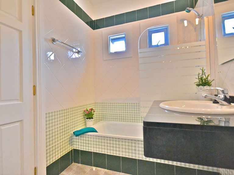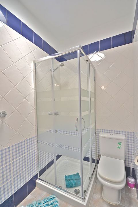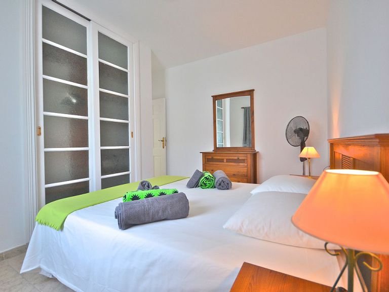 | Die Villa verfügt über zwei große Schlafzimmer, eine Hauptschlafzimmer mit einem Doppelbett und mit eigenem Bad mit Badewanne. Das zweite Schlafzimmer ist mit 2 Einzelbetten ausgestattet. Darüber hinaus gibt es eine zweites Badezimmer mit Dusche, Waschbecken und WC.. Eine Waschmaschine ist vorhanden. |