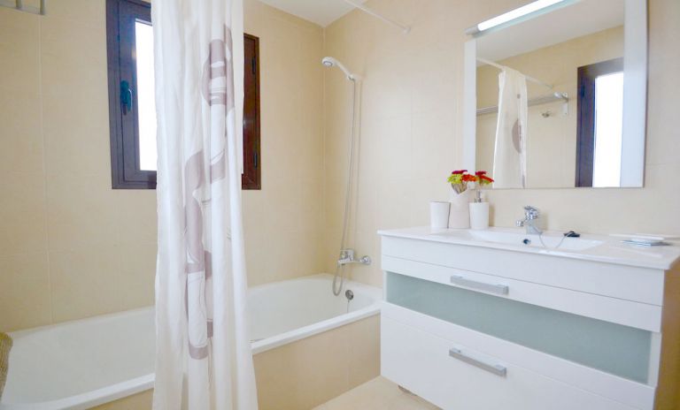 | Die drei Schlafzimmer sind großzügig geschnitten und mit bequemen Doppel- bzw. Einzelbetten ausgestattet. Ein Badezimmer verfügt über eine Badewanne, das andere über eine Dusche. |