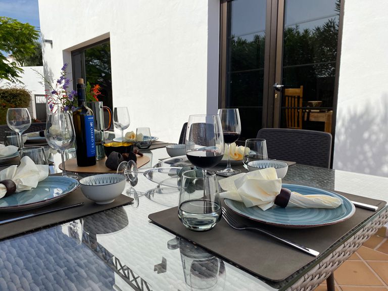| Die Villa ist mit ca. 233 qm Wohnfläche für bis zu 6 Personen geeignet und verfügt über 3 Schlafzimmer und 2 Badezimmer. Die verschieden gestalteten Terrassenbereiche und der Garten mit einem großen Essbereich, einem hochwertigen Elektrogrill der Marke Weber, Sonnenliegen, Sonnenschirm und Gartenmöbeln, sind mit einheimischen Pflanzen und Blumen üppig bepflanzt. Der Pool dieser Villa ist ein Salzwasser- / Meerwasserpool. Der Pool hat eine circa Abmessung von L 6,30 m x B 3,30 m sowie einer Tiefe von ca. 1,40 m und ist sehr gut zum Schwimmen geeignet. |