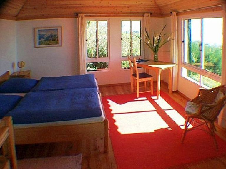 | Im Erdgeschoß befindet sich der Wohnraum mit einem Schlafsofa und integrierter, gut ausgestatteter Küche sowie ein Bad mit Dusche und WC. Im Obergeschoß liegt das geräumige, hell und freundlich eingerichtete Schlafzimmer mit einem großem Doppelbett. | ||