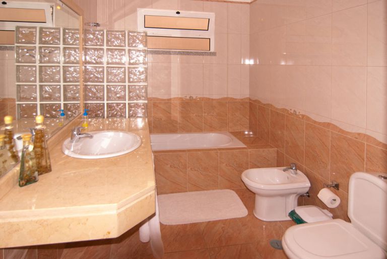 | Die 3 Badezimmer sind mit Dusche oder Badewanne ausgestattet. Ein Gäste WC ist vorhanden. | ||