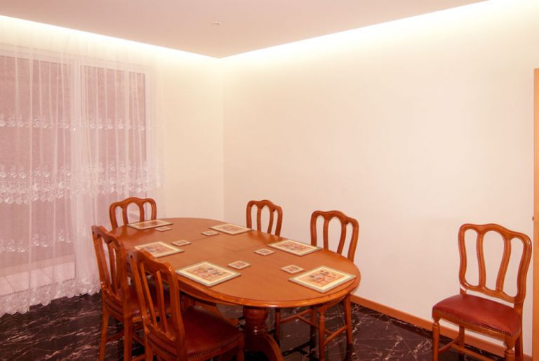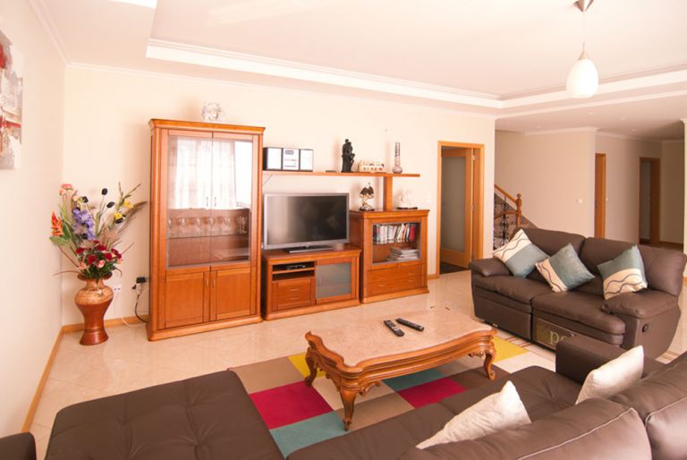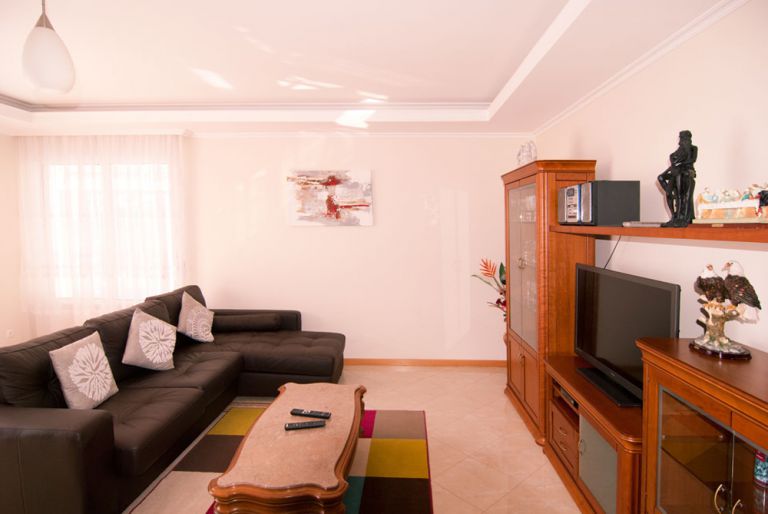 | Im oberen Bereich des Ferienhauses wohnt meist der Eigentümer (mit separatem eigenem privatem Eingang), so das immer ein Ansprechpartner vor Ort ist. Jedoch wird großer Wert auf die Privatsphäre der Gäste gelegt, so das die Nutzung des Pools, Garten und der Sonnenterrasse mit Sonnenliegen und Sitzbereich, ausschließlich den Gästen vorbehalten ist. Der gesamte Gästebereich befindet sich mit Pool (4 x 6 m, Tiefe 1 - 1,90 m) und Terrasse auf einer Ebene. Das große Wohnzimmer, mit seinen Glasfronten zur Sonnenterrasse, verfügt über ein exquisites Sofa, LCD-Fernseher mit Kabel-TV (3 Deutsche Programme), DVD und einer Micro-Audio-Anlage. Zusätzlich steht Internet zur Verfügung. |