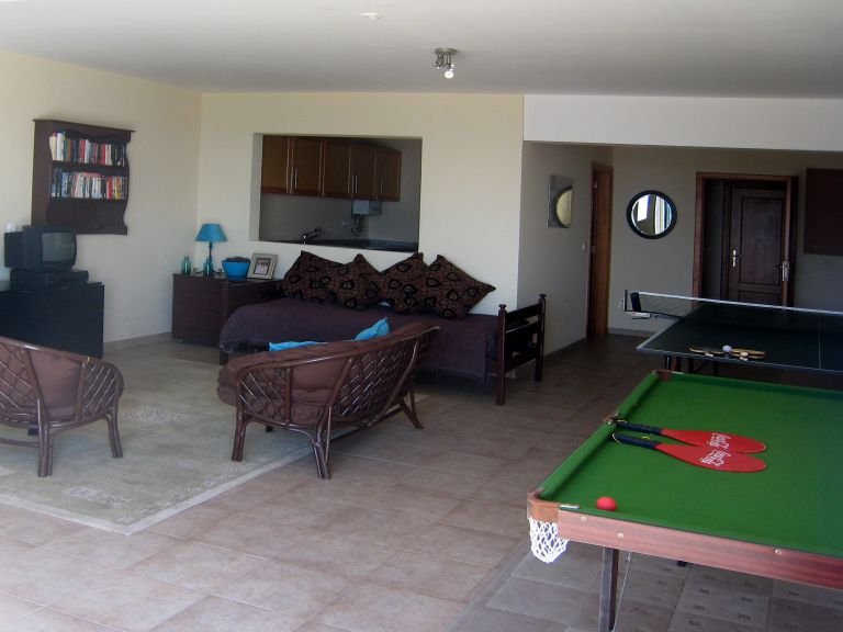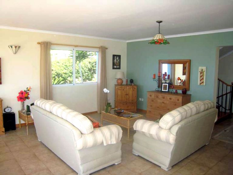 | Das Wohnzimmer ist hell und großzügig, ausgestasttet mit zwei Sofas, einem Fernseher mit SAT-Anschluss für englischsprachige Programme, einer Musikanlage, CD-Spieler, Radio und einem großzügigen Eßtisch und einem rustikalen Kaminofen für kühlere Tage. Darüber hinaus stehen Heizradiatoren zur Verfügung. | ||