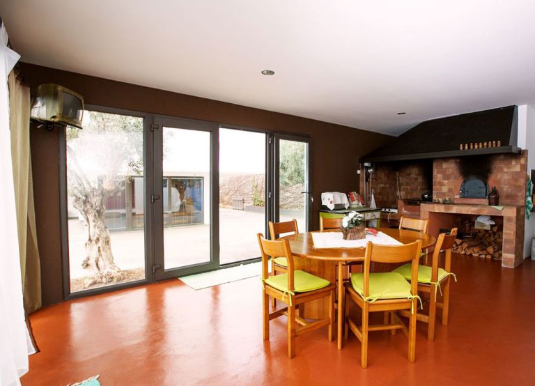 | Zur Villa gehört ein separates, fast komplett verglastet Grillhaus, dass gegen einen Aufpreis (€ 120,00 pro Aufenthalt) mit gebucht werden kann. Es verfügt über einen gemauerte Grillstelle mit Backofen, einem Spültisch und Esstisch.