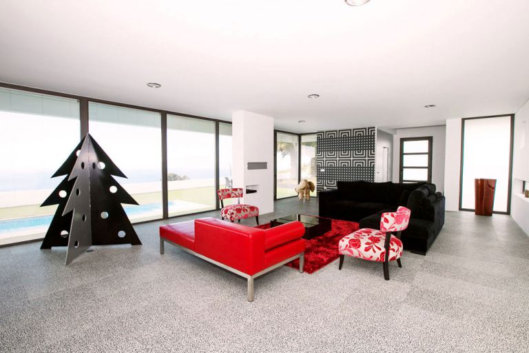 | Das weiträumige Wohnzimmer verfügt über ein modernes Couchensemble, Kabel-TV mit Deutschen Sendern und Panoramatüren, die direkt zum Aussenpool mit Sonnenliegen führen. | |||||
