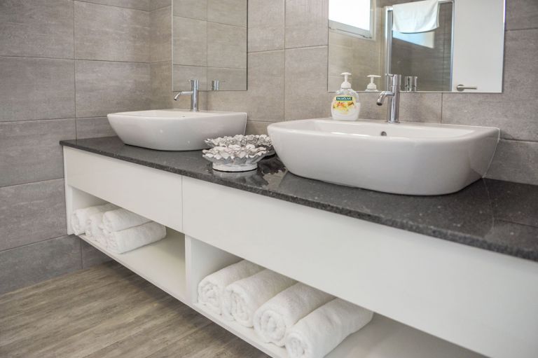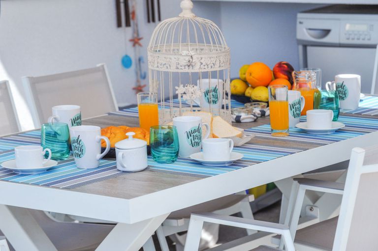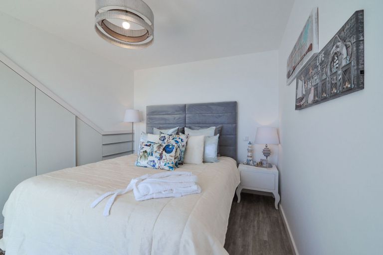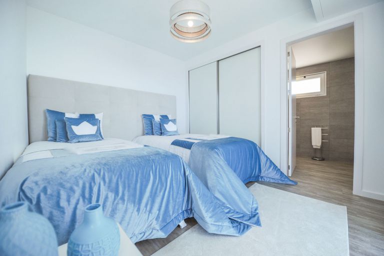 | Zwei Schlafzimmer sind mit einem großen Französichen Bett (180 x 200 ) bzw. einem Doppelbett ausgestattet und ein weiteres mit zwei Einzelbetten. Jedes Schlafzimmer verfügt über ein privates Badezimmer. Von jedem Schlafzimmern aus haben Sie Zugang auf den Balkon. | |||||