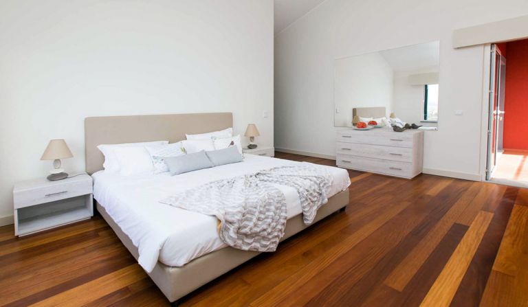 | Im Obergeschoss liegen jeweils 3 Schlafzimmer, eines mit mit privatem Bad und King Size Bett, zwei weitere Schlafzimmer mit separaten grossen Betten und einem gemeinsamen Duschbad. | |||||