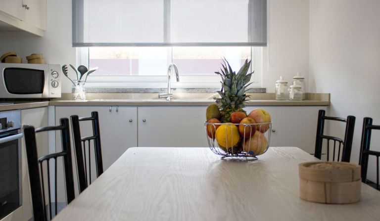| Die angrenzende Küche verfügt über einen Backofen, Mikrowelle, Kühlschrank/TK, Cerankochfeld, Toaster, Waschmaschine, Wasserkocher und Kaffeemaschine. Ein Pkw Parkplatz steht zur Verfügung. |