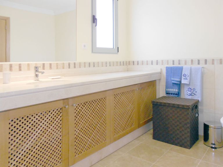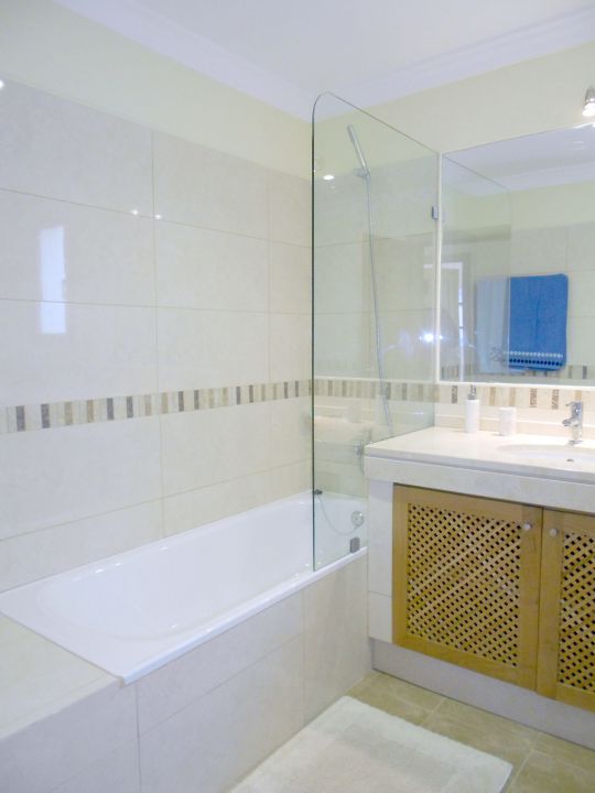 | Die Villa verfügt über zwei Schlafzimmer mit Doppelbetten. Das Badezimmer mit Wanne liegt zu einem Schlafzimmer ensuite. Das andere Badezimmer liegt separat und verfügt über eine Dusche. Beide Schlafzimmer bieten einen schönen Meerblick. | ||