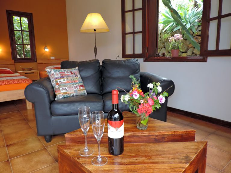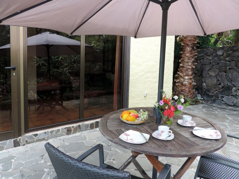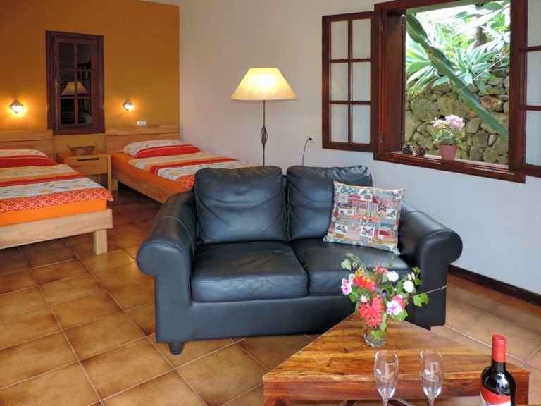 | Ferienhaus C ist für 2 Personen in Studioform konzipiert. Es verfügt über einen gemütlichen Wohnschlafraum, der mit einer Sitzgruppe, SAT-TV und zwei Einzelbetten möbliert ist. Das Badezimmer ist mit Dusche, Waschbecken und ausgestattet. Vor dem Ferienhaus befindet sich die private Terrasse mit Sonnenliegen, Sitzmöbeln und einem schönen Meerblick. Lassen Sie Ihren Blick über den herrlichen Garten auf den Atlantik und das wunderschöne Orotavatal bis auf den Teide schweifen und genießen Sie die herrliche Ruhe. |