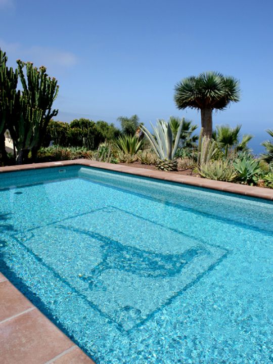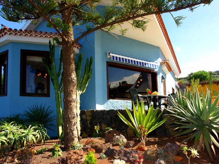 | Das Ferienhaus für Familienurlaub liegt in einer kleinen Ferienanlage mit solarbeheiztem Pool bei La Matanza, im grünen Norden Teneriffas, direkt an der Steilküste, nur 250 Meter über dem Meer. Die Anlage besteht aus sechs Ferienhäusern, einer Villa und drei Ferienwohnungen, umgeben von einem schönen tropischen Garten. Genießen Sie die herrliche Ruhe dieser paradiesischen Oase mit Palmen, Kakteen, Zitronenbäumen und blühenden Sträuchern. Ein Pool (4,50 x 8,50) mit großer Poolterrasse, die mit Sitzgelegenheiten und Sonnenliegen ausgestattet ist, steht allen Gästen zur Verfügung. |