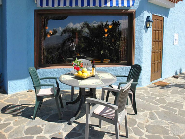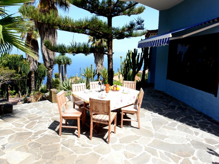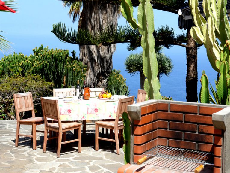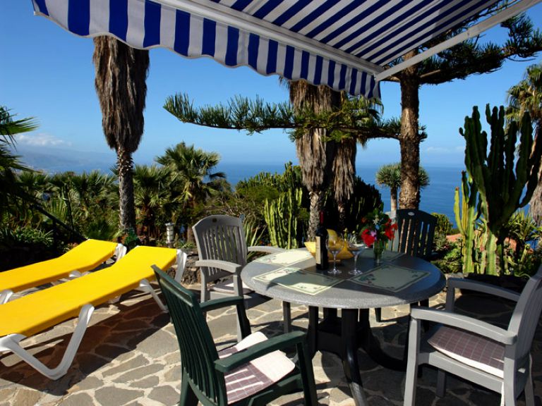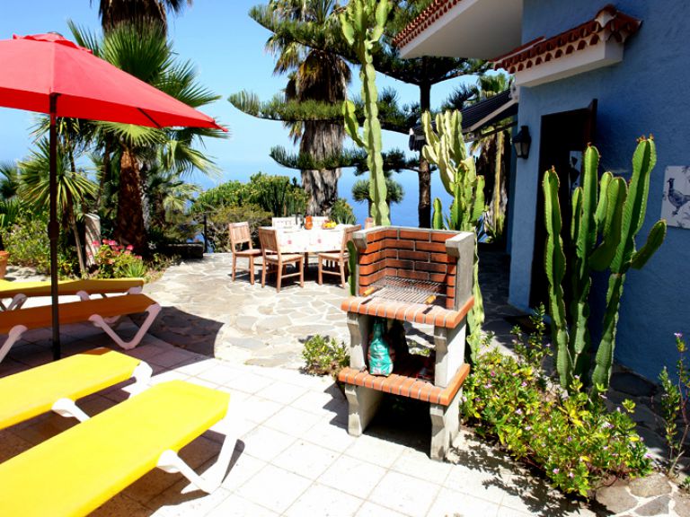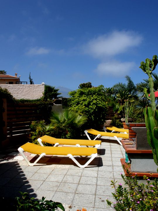 | Die private Terrasse des Ferienhausesist mit zwei Gartenliegen, Sonnenschirm und Gartengrill ausgestattet. Lassen Sie Ihren Blick über den herrlichen Garten auf den Atlantik und das wunderschöne Orotavatal bis zum Teide schweifen und genießen Sie die wohltuende Ruhe. | |||||