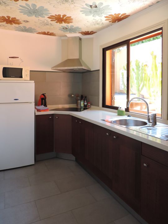| Die Küche ist mit einem Cerankochfeld, Wasserkocher, Toaster, Kaffeemaschine und allem erforderlichen Küchenzubehör eingerichtet. | |||||