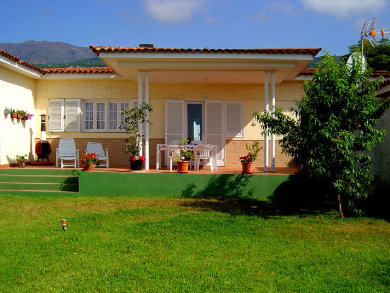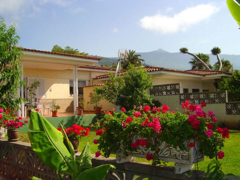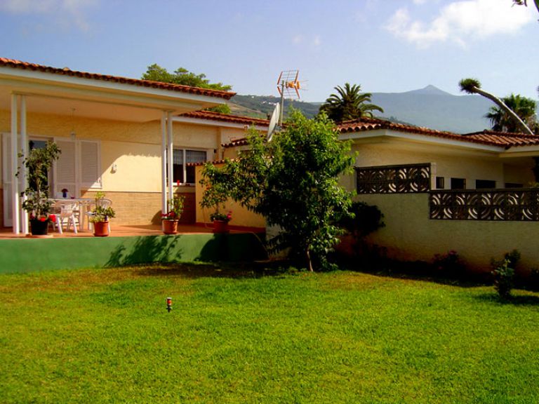 | Das Ferienhaus liegt in einem ruhigen, gepflegten Villenviertel, nur 290 Meter über dem Meer. Es gibt zwei ca. 30 qm große Terrassen, eine vor und eine hinter dem Haus. Auf der Terrasse stehen Gartenmöbel, Sonnenliegen, Sonnenschirm und ein Holzkohlegrill zur Verfügung. Das Ferienhaus ist von einem 250 qm große Garten mit Rasenfläche und Sträuchern umgeben. Außerdem wachsen hier noch Obstbäume, wie Avocado-, Apfel-, Papaya- und Orangenbäume sowie Bananen. Das Obst können die Gäste gerne ernten. Der herrliche Blick auf den Atlantik und auf den Teide, den höchsten Berg Spaniens, wird Sie begeistern. Der beheizte Salzwasserpool ist nur eine Minute vom Haus entfernt und wird von den Gästen zweier weiterer Ferienhäusern mitgenutzt. Er hat eine Größe von ca. 8 x 4,5 Metern bei einer Tiefe von 1,5 bis 1,7 Meter. |