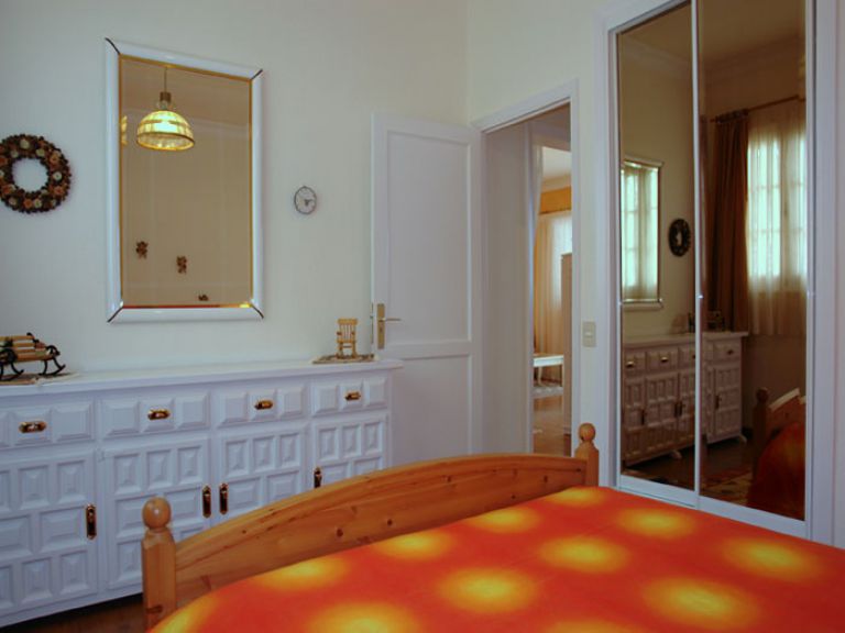 | In beiden Schlafzimmern sind jeweils mit einem Doppelbett (160 x 200) ausgestattet. Das Badezimmer mit Waschbecken, Wanne/Dusche und WC ist geräumig und modern eingerichtet. Bettwäsche ist ausreichend vorhanden, so dass wöchentlich die Wäsche gewechselt werden kann. Ebenso liegen genügend Geschirr-, Hand- und Badetücher bereit. Ein kleiner Safe steht zur Verfügung. |
