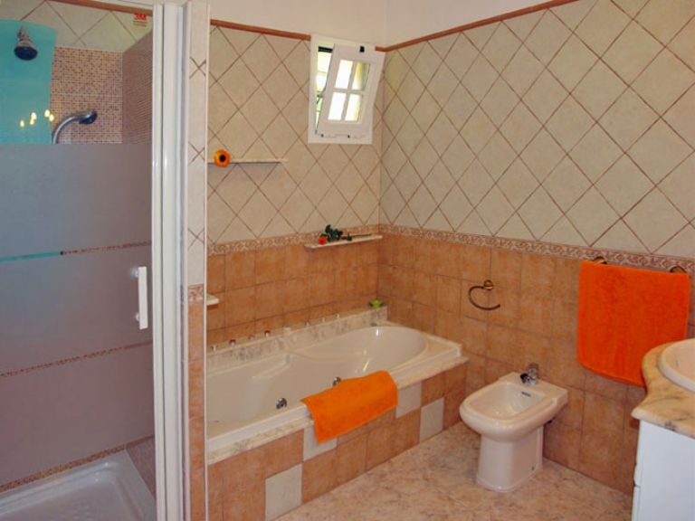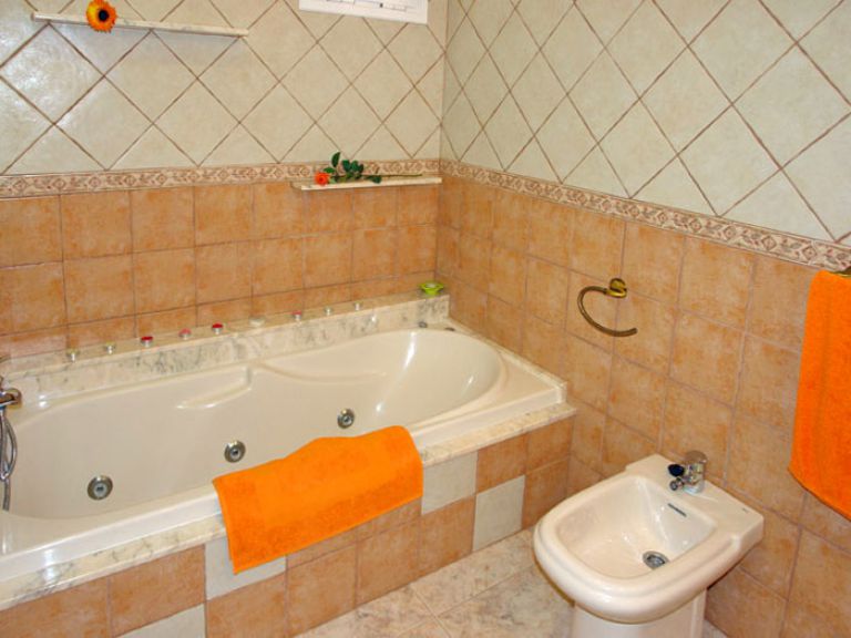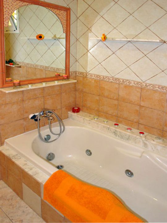| In einem Schlafzimmer steht ein Doppelbett in der Größe 180 x 200 cm (2 Matratzen je 90 x 200 cm) und in dem anderen ein Doppelbett in der Größe 160 x 200 cm. Eine Waschmaschine steht zur Verfügung, ebenso ein Bügeleisen und Bügelbrett. Das Badezimmer ist geräumig und modern eingerichtet. Es verfügt über ein Waschbecken, eine Whirlpool-Wanne/Dusche, Bidet und WC. Es ist ausreichend Bettwäsche vorhanden, so dass wöchentlich die Wäsche gewechselt werden kann. Ein kleiner Safe ist vorhanden. |