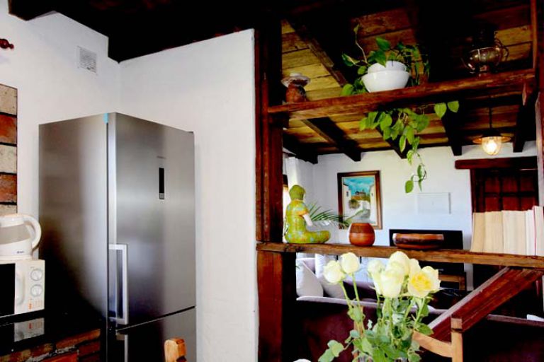 | Es verfügt über ein Wohnzimmer mit einer gemütlichen Sitzecke und offenem Kamin, SAT-TV und Radio mit CD -Player. Das Wohnzimmer geht offen in die Küche mit integriertem Essbereich über. Internetzugang per WLAN ist kostenlos. | ||