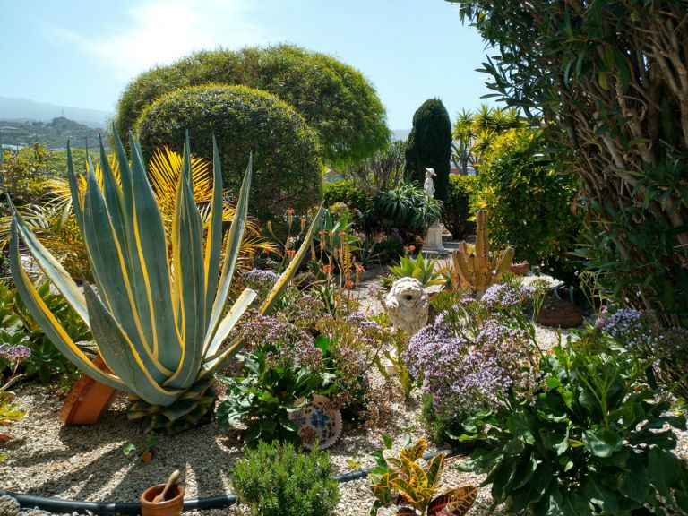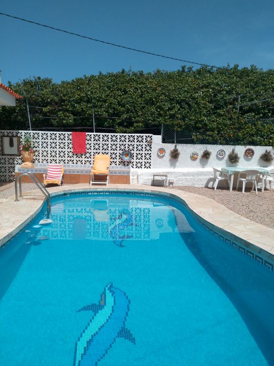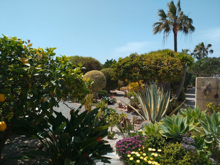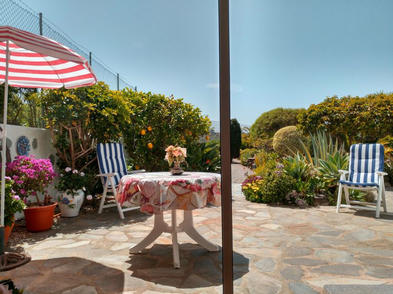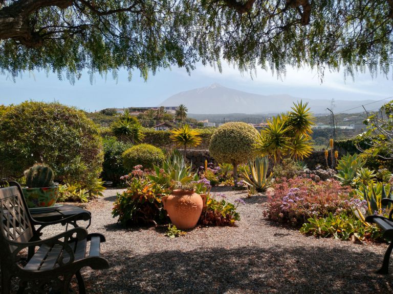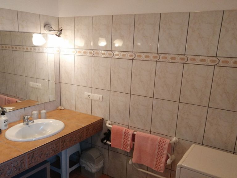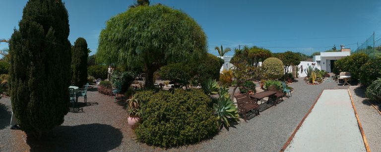 | Von der großen und privaten Terrasse mit Sonnenliegen und Gartenmöbeln gelangen Sie in den ca. 2000 qm grobßen subtropischen Garten mit lauschigen Schattenplätzen unter alten Pfefferbäumen. Die Früchte dürfen geerntet werden. Außer dem lädt eine Bocciabahn zum Zeitvertreib ein. Auf der Finca befindet sich ein Pool, der von den Gästen ganzjährig genutzt werden kann. | ||