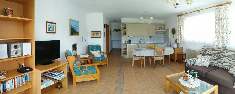 | Mit ca. 45 qm Wohnfläche verfügt es über ein Schlafzimmer mit Doppelbett (180 x 190) aus Naturholz mit guten Latexmatratzen, ein Wohn - Esszimmer mit integrierter Küchenzeile mit einem Elektroherd mit Cerankochfeld und Backofen, Kühlgefrierkombination sowie SAT - TV und Radio mit Kassette und CD - Player, ein Badzimmer mit Dusche, WC, einem großen Waschtisch und Waschmaschine und eine Terrasse mit Gartenmöbeln. | ||