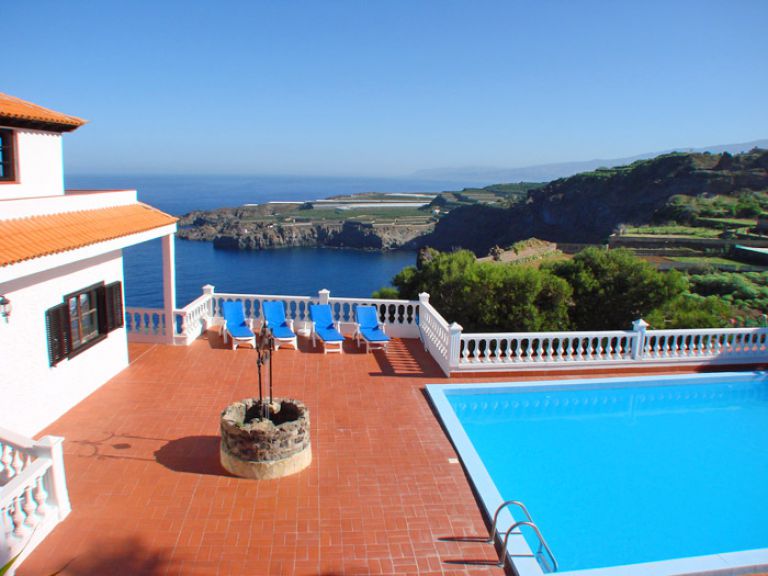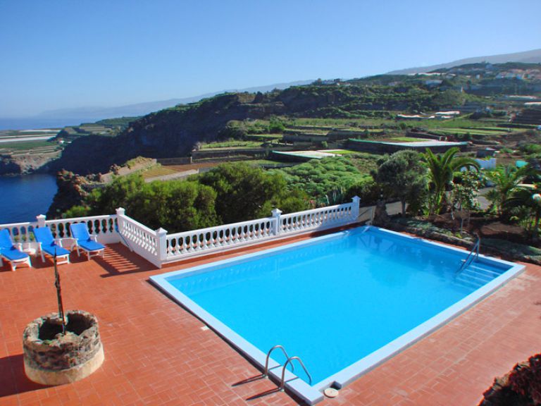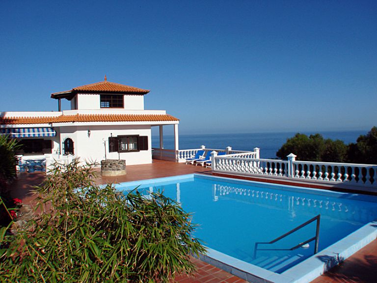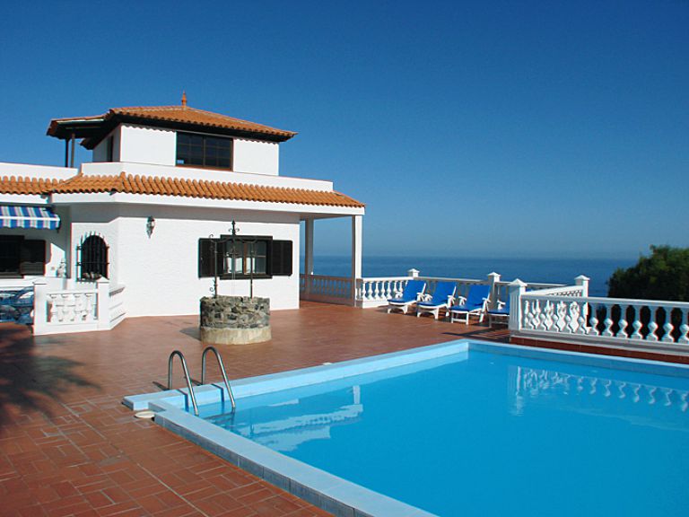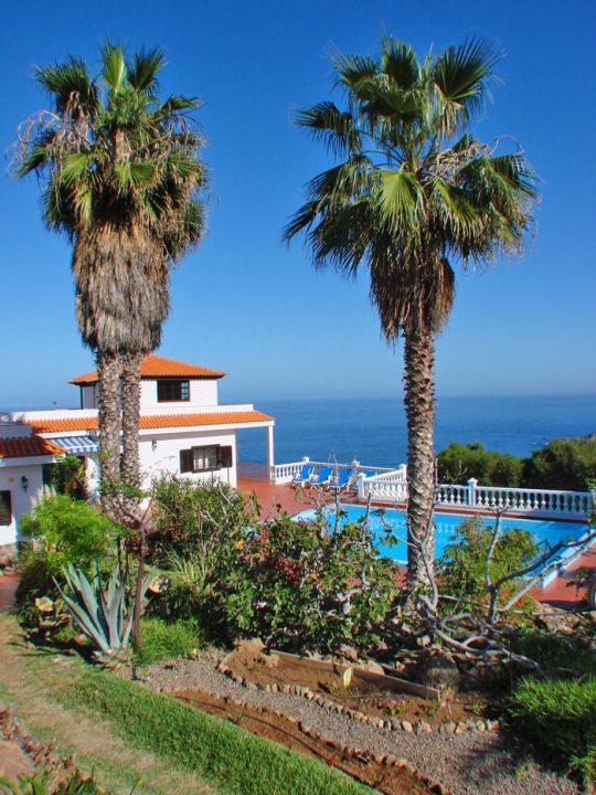 | Das exklusive Ferienhaus mit einem 6 x 10 Meter großem Pool (140 bis 180 tief) liegt zwischen Puerto de la Cruz und Icod de los Vinos, am Rande eines kleinen Dorfes. Das Ferienhaus ist von Bananenplantagen und Weinanbauflächen umgeben. Bemerkenswert ist die herrliche Ruhe, die dieses Ferienhaus umgibt. Von hier aus genießen Sie einen wunderschönen Ausblick auf den Atlantik und den 3.718 Meter hohen Teide, der in den Wintermonaten mit Schnee bedeckt sein kann. Genießen Sie den phantastischen Panoramablick, der immer wieder aufs Neue begeistert. An der nur wenige Autominuten entfernt liegenden Steilküste besteht die Möglichkeit, zu angeln oder in einem natürlichen Meerwasserschwimmbecken zu baden. |