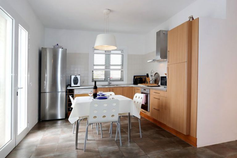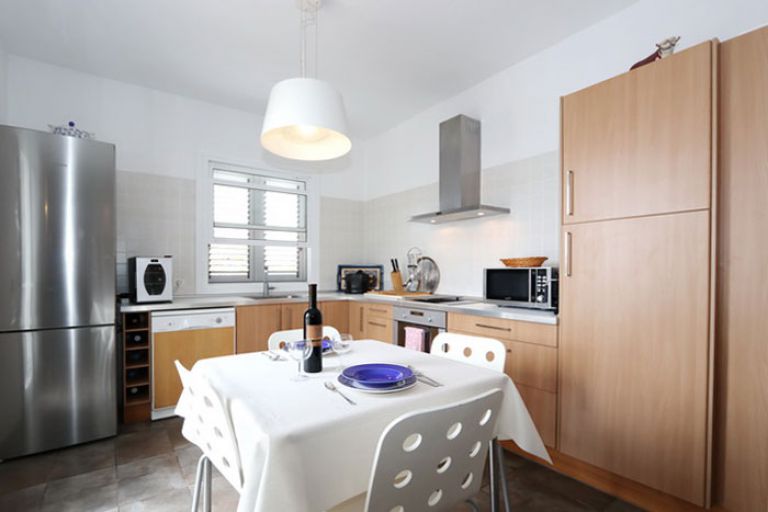 | Die moderne Einbauküche ist mit einem Geschirrspüler, Herd mit Cerankochfeld und Backofen, Kühlgefrierkombination, Weinkühlschrank, Kaffeemaschine, Mikrowelle, Wasserkocher und Toaster ausgestattet. | |||||