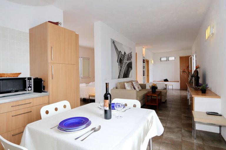 | Das Wohnzimmer verfügt über eine gemütliche Couchgarnitur und einen LCD-Fernseher mit deutschen Programmen. Die Couch kann zu einem Bett (140 x 200) umgebaut werden. | |||||