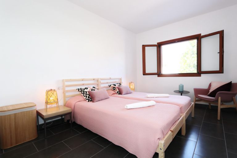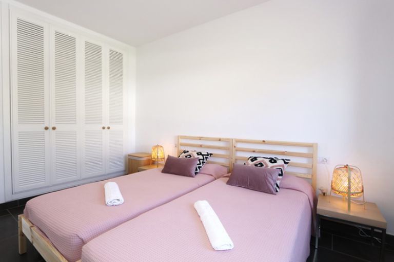 | Ein Schlafzimmer ist mit 2 Einzelbetten (90 x 1,90 m) das andere mit einem Doppelbett (1,80 x 1,90 m ) und deckenhohen Kleiderschränken ausgestattet. Die zwei Badezimmer verfügen über eine Dusche, Waschbecken und WC. Ein Haarfön ist vorhanden. Bettwäsche, Hand-, Bade- und Geschirrtücher stehen ausreichend zur Verfügung. Strandlaken bitten wir mitzubringen. Bügeleisen und Bügelbrett sind vorhanden Ein Mietwagen ist erforderlich, ein Stellplatz steht zur Verfügung. |