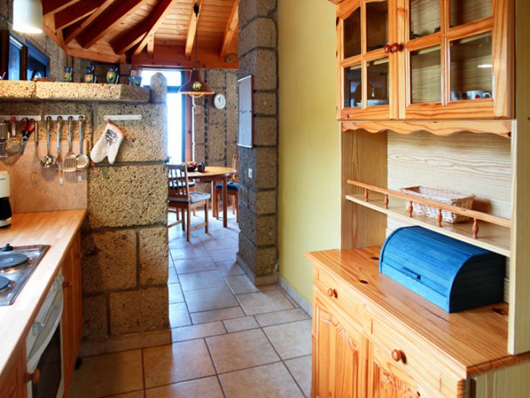 | Die Küche ist mit einem Vierplattenherd, Backofen und Kühlschrank, Kaffeemaschine, Toaster, Wasserkocher und Saftpresse ausgestattet. Auch eine Waschmaschine, ein Bügelbrett und ein Bügeleisen sind vorhanden. Der Esstisch bietet Platz für 6 Personen. | ||