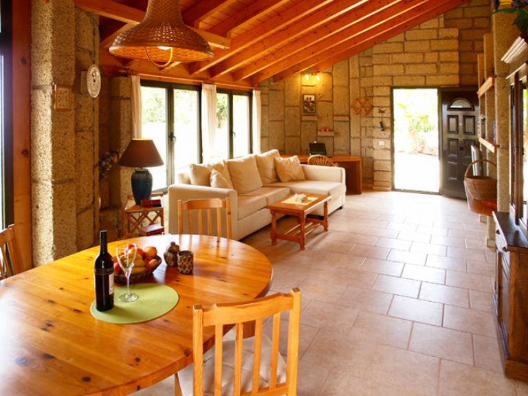| Das exklusive Ferienhaus ist von einem ca. 12.000 qm großen Grundstück umgeben. Durch seine eigenwillige Architektur hebt es sich deutlich von den meisten anderen Ferienhäuser auf der Insel ab. So wurden Holz und Natursteine geschmackvoll kombiniert und bilden eine harmonische Einheit. | ||