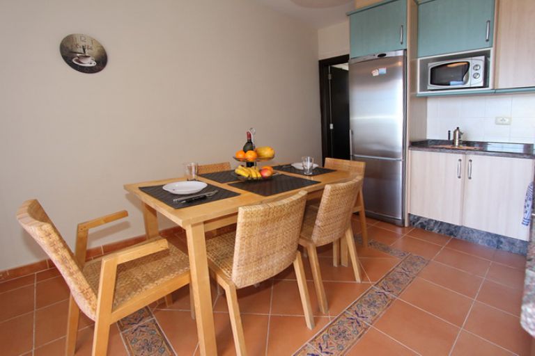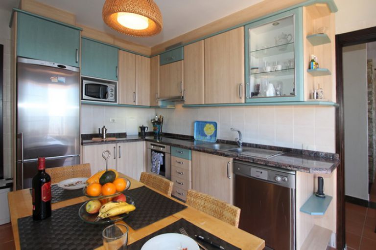 | Zur Ausstattung der Küche mit Essbereich gehören fast alle modernen Geräten wie Cerankochfeld, Backofen, Kühl-Gefrierkombination, Kaffeemaschine und Toaster. Desweiteren sind eine Waschmaschine, Trockner, Bügeleisen und Bügelbrett vorhanden. | |||||