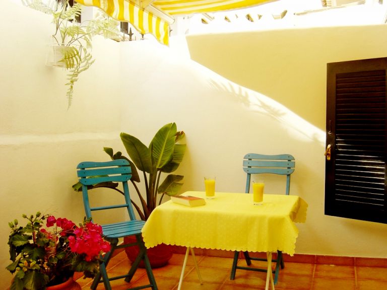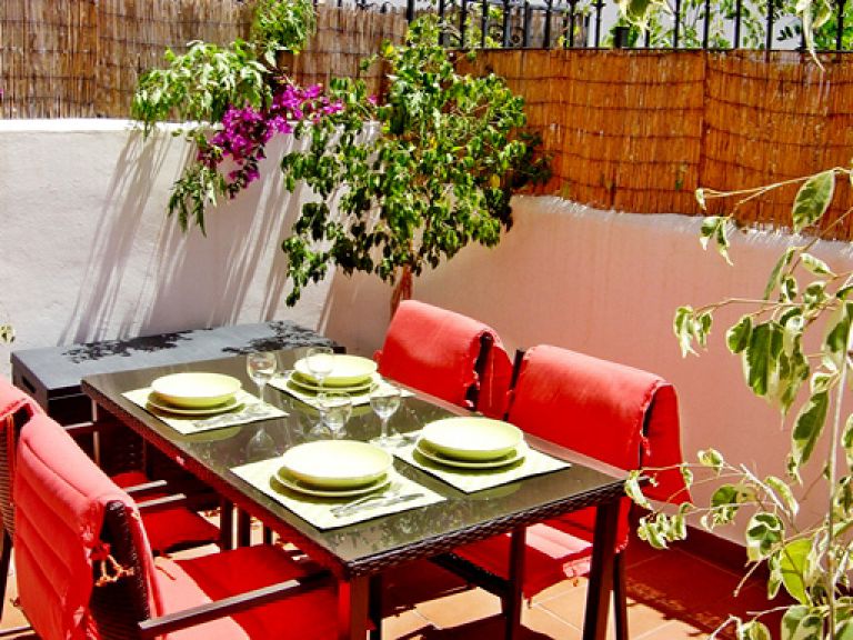 | Von de unteren Etage aus gelangen Sie auf die private Terrasse mit kleinen Garten. Ein weiterer Ausgang führt an den Gemeinschaftspool. | ||