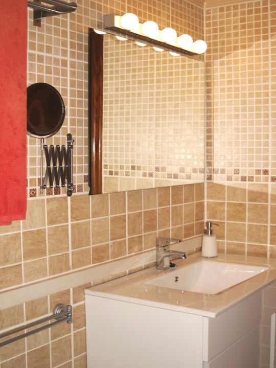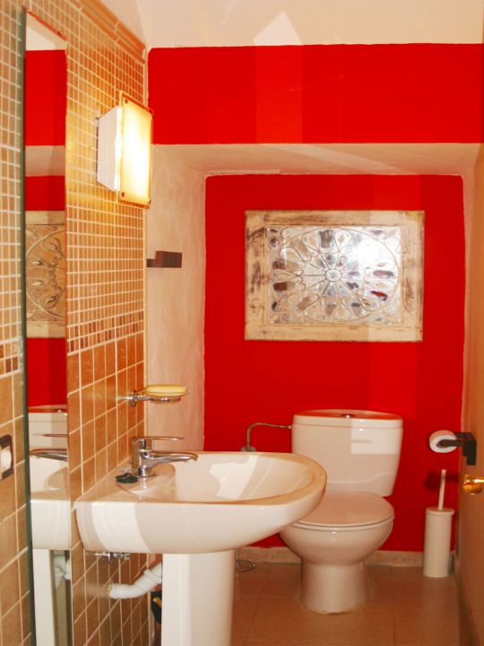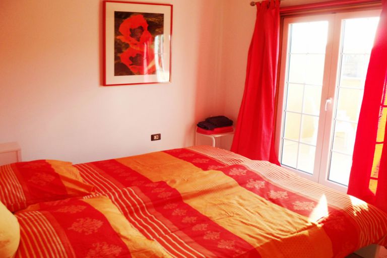 | Im Obergeschoß liegen die beiden Schlafzimmer die durch Rollläden zu verdunkeln sind. Vor dem größeren Schlafzimmer mit Doppelbett und zwei hochwertigen Latexmatratzen (90 x 200 cm) befindet sich ein schöner Sonnenbalkon. Dieses Schlafzimmer verfügt über einen geräumigen Kleiderschrank, einen Safe und eine Klimaanlage. | |||||