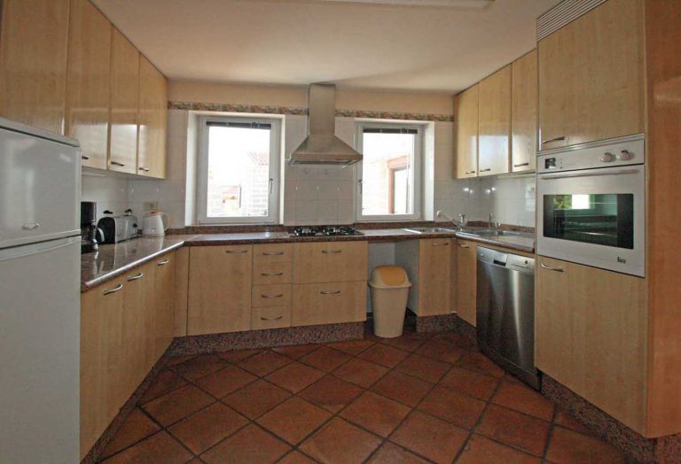 | Die Küche ist mit einem Gasherd, einer Granitarbeitsplatte, elektrischem Backofen, Geschirrspüler, Kühl - Gefrierkombination und allen erforderlichen Küchenutensilien ausgestattet. |