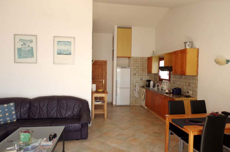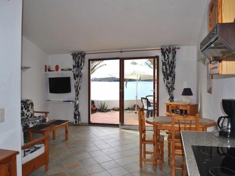 | Das Ferienhaus mit separatem Schlafzimmer umfaßt ca. 60 qm und ist für 2 Personen geeignet. Es verfügt über einen gemütlichen Wohnraum mit Couchgarnitur, SAT - TV und Stereoanlage sowie einen angrenzenden Essbereich. Die halbintegrierte Einbauküche ist mit diversen elektrischen Haushaltsgeräten und einem Cerankochfeld ebenso gut ausgestattet wie das Badezimmer mit Dusche, Waschbecken und WC. Zum Ferienhaus gehört eine mit Gartenmöbeln und Sonnenliegen ausgestattete Terrasse mit herrlichem Meerblick. | |||||