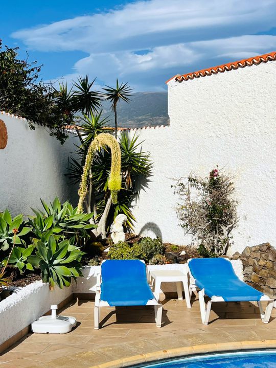 | Das gepflegte Ferienhaus mit Pool liegt, nur 500 Meter vom Meer entfernt, am Ortsrand von Poris de Abona. Der kleine Ort Poris de Abona bietet Einkaufsmöglichkeiten für den täglichen Bedarf. Es gibt eine Apotheke, eine Bank und mehrere Restaurants. In unmittelbarer Nähe befinden sich kleine Kiessandstrände. | |||||
