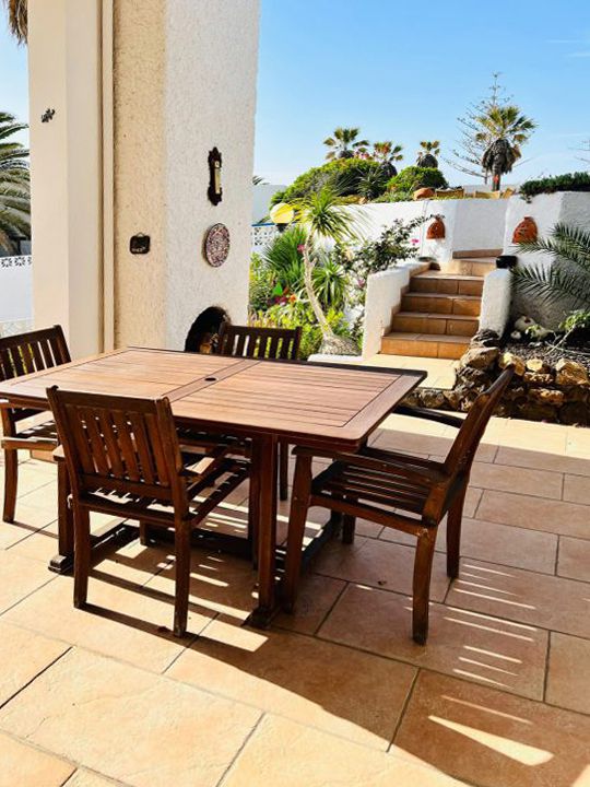 | Das Haus befindet sich auf einem ca. 500 qm großen eingefriedeten Gartengelände. Von der großen Sonnenterrasse genießen Sie einen schönen Ausblick auf den Atlantik und den kleinen Ort. Auf der überdachten Terrasse vor dem Wohnzimmer befindet sich ein gemauerter Außengrill. Darüber hinaus gibt es eine solarbeheizte Aussendusche. Das Ferienhaus mit ca. 85 qm Wohnfläche, zwei Schlafzimmern, einem Badezimmer und einem Gäste-WC ist für 4 Personen geeignet. Da die Nachbarschaft sehr ruhig ist, wird das Haus ebenfalls nur an ruhige erwachsene Personen vermietet. |