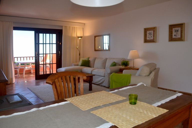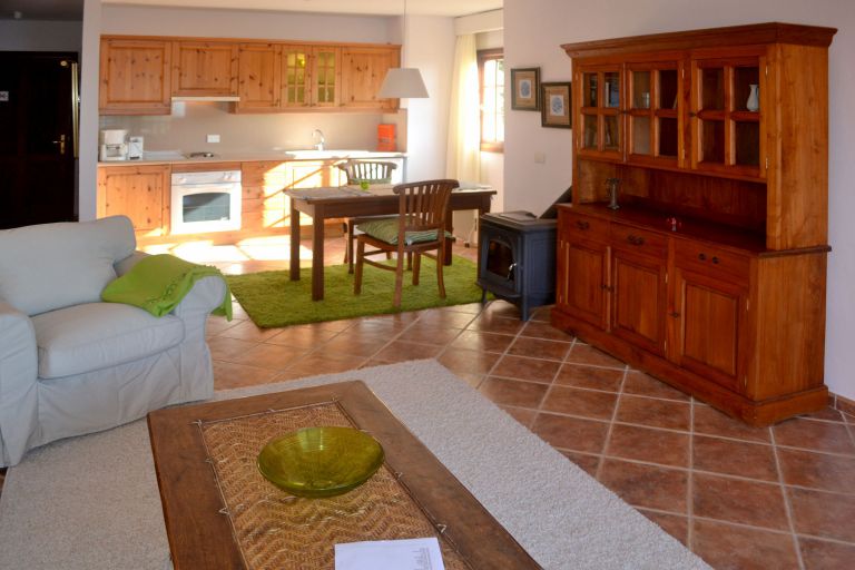 | Die geschmackvoll eingerichtete Ferienwohnung ist mit ca. 37 qm Wohnfläche für 2 bis 3 Personen geeignet und verfügt über ein großes Wohnzimmer mit einer kuscheligen Chouchgarnitur, SAT - TV, Radio und einem Kaminofen. Die bequeme Couch läßt sich schnell in eine Schlafgelegenheit für zwei Personen umwandeln. Die integrierte Einbauküche ist unter anderem mit einem Backofen, Toaster, Kaffeemaschine und Espressokocher ausgestattet. Darüber hinaus steht Ihnen ein Schlafzimmer mit einem großen Doppelbett und ein schönes Duschbad zur Verfügung. Vom hier aus gelangen Sie auf die separate Terrasse mit Gartenstühlen und einer traumhaften Aussicht auf das Meer und die Nordküste Teneriffas. Internetzugang über Wlan ist kostenlos vorhanden. |