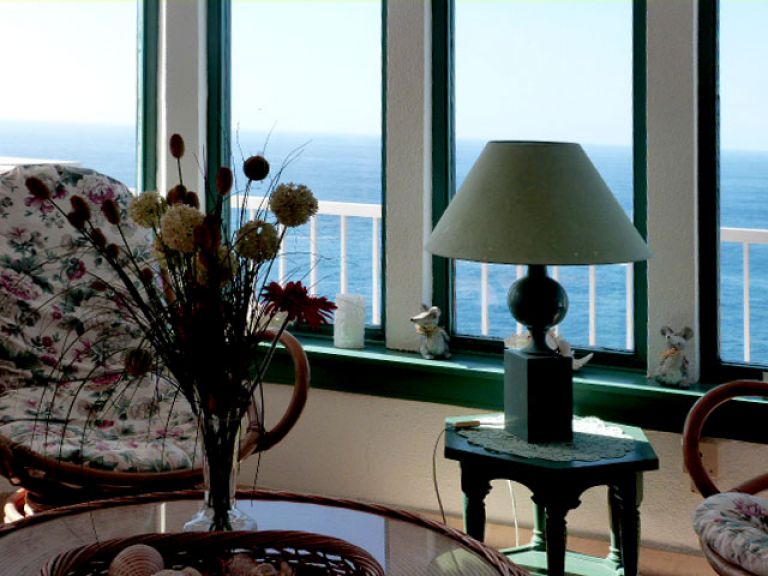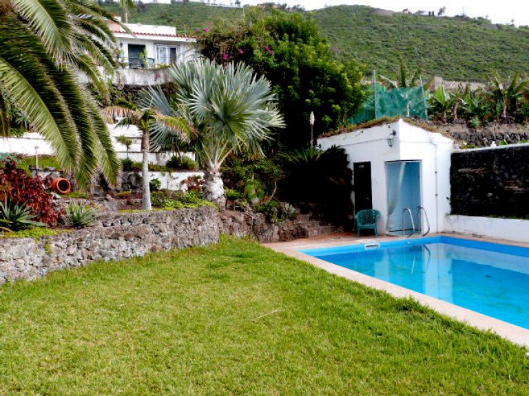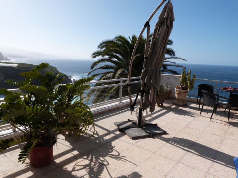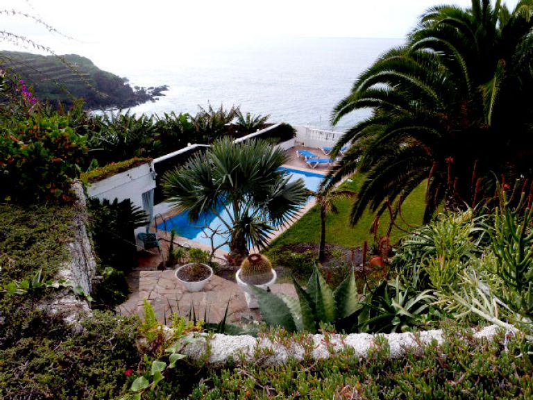| Die Ferienwohnung liegt umgeben von einer großen Gartenanlage mit Rasenfläche und Pool (5 x 10 m), traumhaft und sehr romantisch, direkt an der Steilküste oberhalb des Atlantiks und bietet einen unvergleichlichen Meerblick und Blick auf die Küste und den Teide. | |||||
