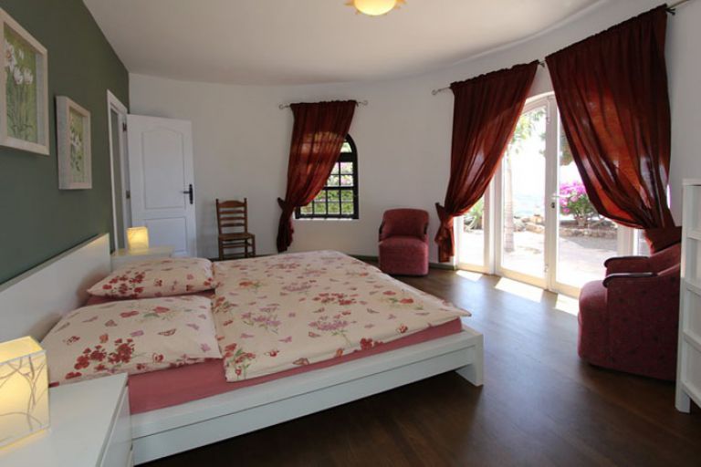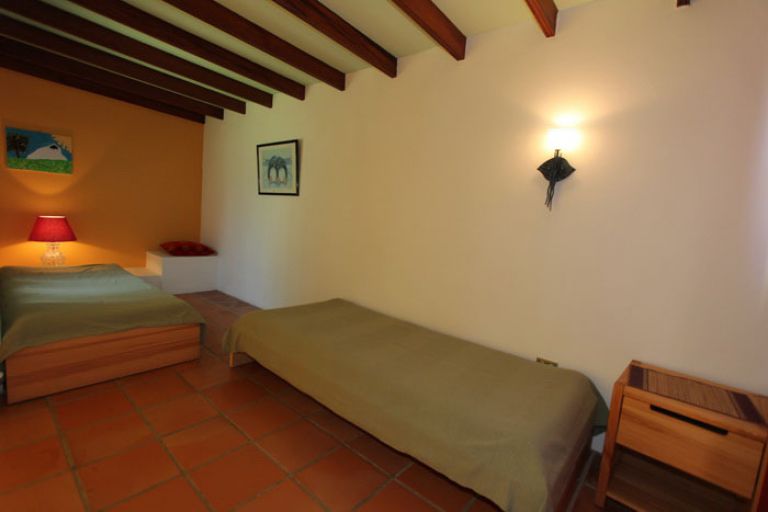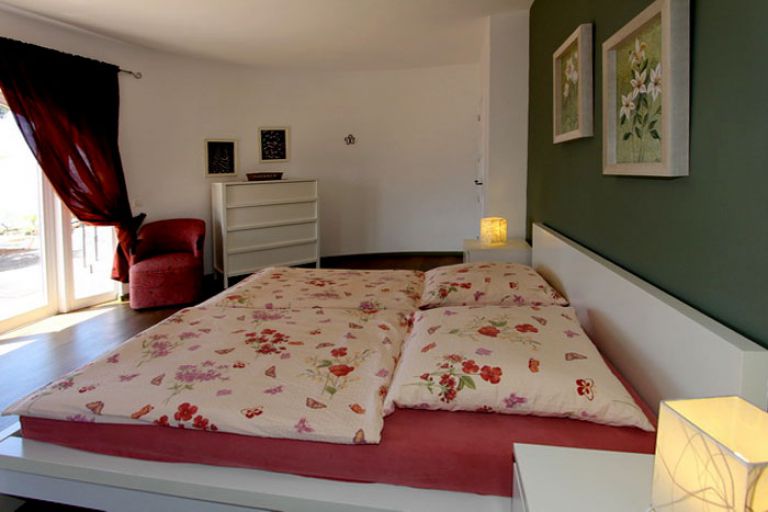 | Die Ferienwohnung besitzt drei Schlafzimmer. Zwei Schlafzimmer sind mit Doppelbetten (180 x 200) und ein Schlafzimmer mit zwei Einzelbetten (90 x 200) möbliert. Zwei Schlafzimmer sind durch einen offenen Durchgang in Türbreite getrennt. Sehr praktisch ist ein begehbarer Kleiderschrank. Eines der Schlafzimmer verfügt über einen offenen Kamin. Die beiden hellen, freundlichen Badezimmer sind mit Dusche, Waschbecken und WC ausgestattet. | |||||