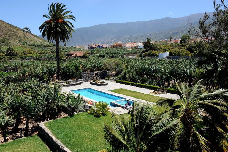 | Das exklusive Landgut auf Teneriffa bietet ein wunderbares Außengelände mit einem großen Swimmingpool und Whirlpool. Rund um das Landhaus bestimmen einheimische Flora und Fauna und Jahrhunderte alte Bäume das Bild. Neben der stilvollen Einrichtung fehlt es aber auch nicht an neuester Technik. | ||