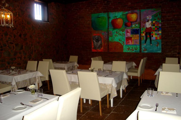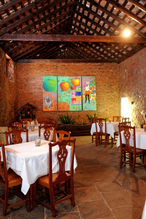 | Die ehemalige Kapelle und der Raum zum Tabaktrocknen sind als Esszimmer und Aufenthaltsraum zur gemeinsamen Nutzung umgebaut worden. Im vorderen Teil des großen Geländes befindet sich ein kleines Restaurant in alten Gemäuern, wo Sie auch Ihr Frühstück einnehmen können. | ||