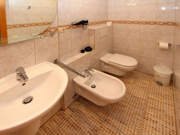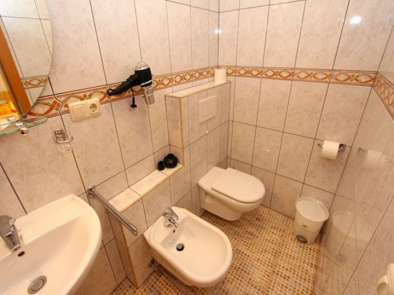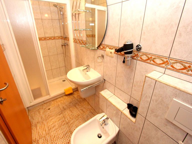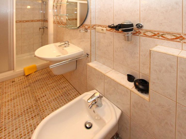 | Zu jedem Schlafzimmer gehört ein eigenes Badezimmer, das mit Dusche, Bidet, Waschbecken, WC und Föhn ausgestattet ist. Eine Waschmaschine ist ebenfalls vorhanden. | ||