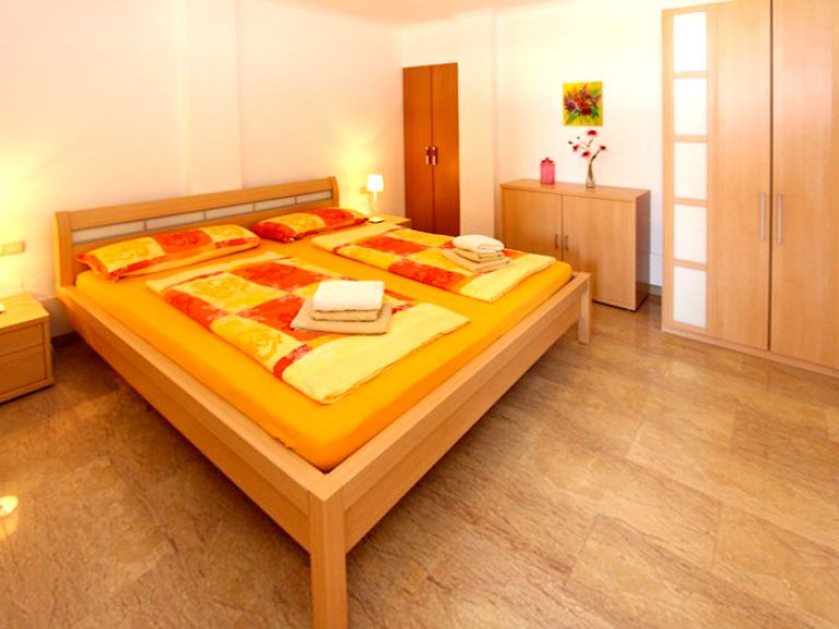 | Die Ferienwohnung verfügt über zwei Schlafzimmer mit jeweils einem Doppelbett in der Größe 180 x 200 cm bzw. 160 x200 cm (Komfortbetten mit je 2 Matratzen á 90 bzw. 80 x 200 cm). | ||