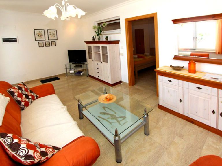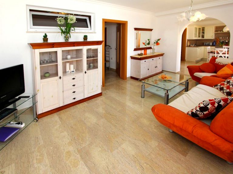 | Die Ferienwohnung wurde mit hochwertigem Marmorfußboden und Fußbodenheizung ausgestattet. Das Wohnzimmer ist mit einem gemütlichen Sofa, Sessel und SAT-TV möbliert. Der Internetzugang über Wlan ist kostenlos. | ||