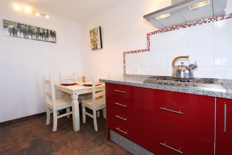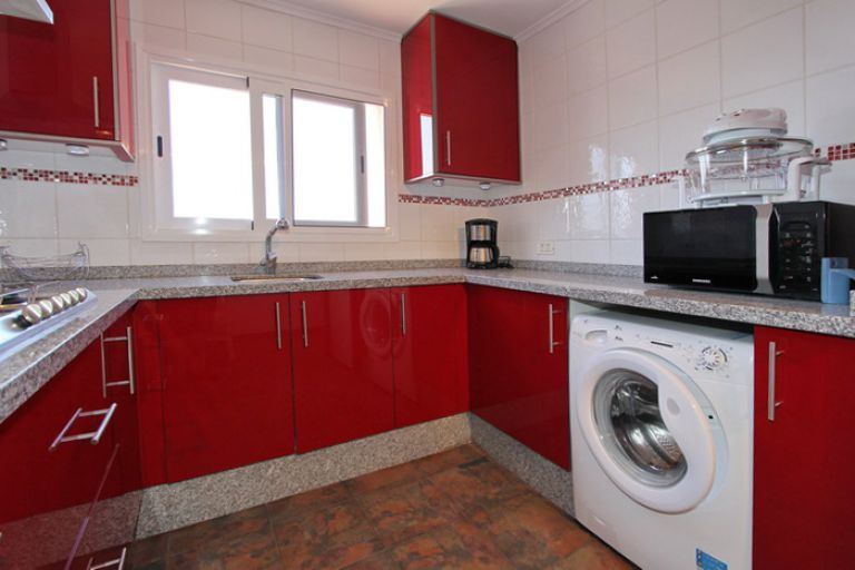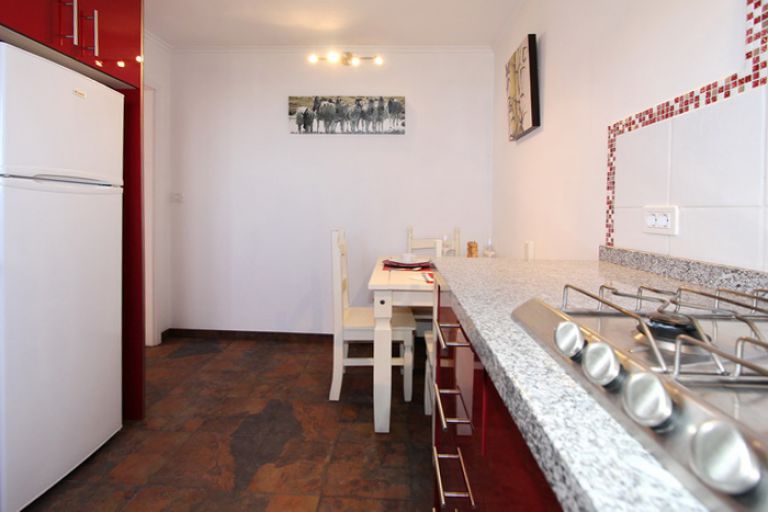 | Die moderne und voll ausgestattete Küche bietet alles was Sie zur Selbstverpflegung benötigen. Neben einem 5-flammigen Gasherd und großer Kühl-Gerfrier-Kombi stehen u.a. Mikrowelle, Toaster und Kaffeemaschine sowie eine Waschmaschine zur Nutzung bereit. Ein kleiner Essbereich für 3 Personen ist in die Küche integriert. | ||