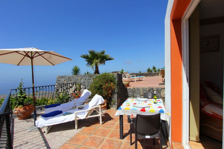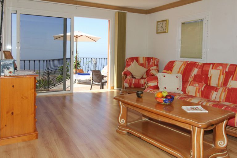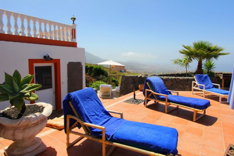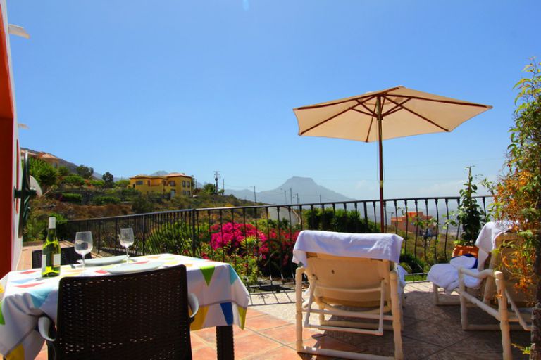 | Von der Terrasse geniessen Sie einen herrlichen Panoramablick auf den Atlantik und die Costa Adeje mit dem Tafelberg El Conde sowie auf die Insel La Gomera. Traumhafte Sonnenuntergänge werden hier sicherlich lange in Erinnerung bleiben. | ||